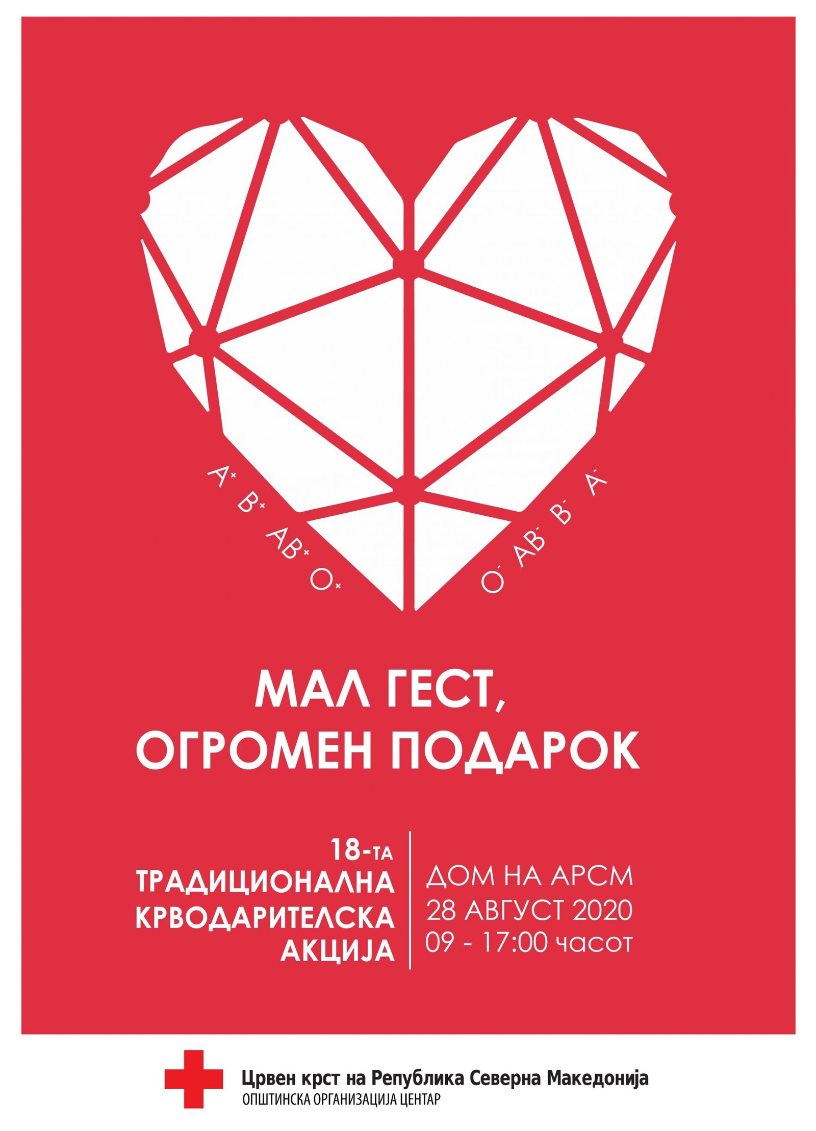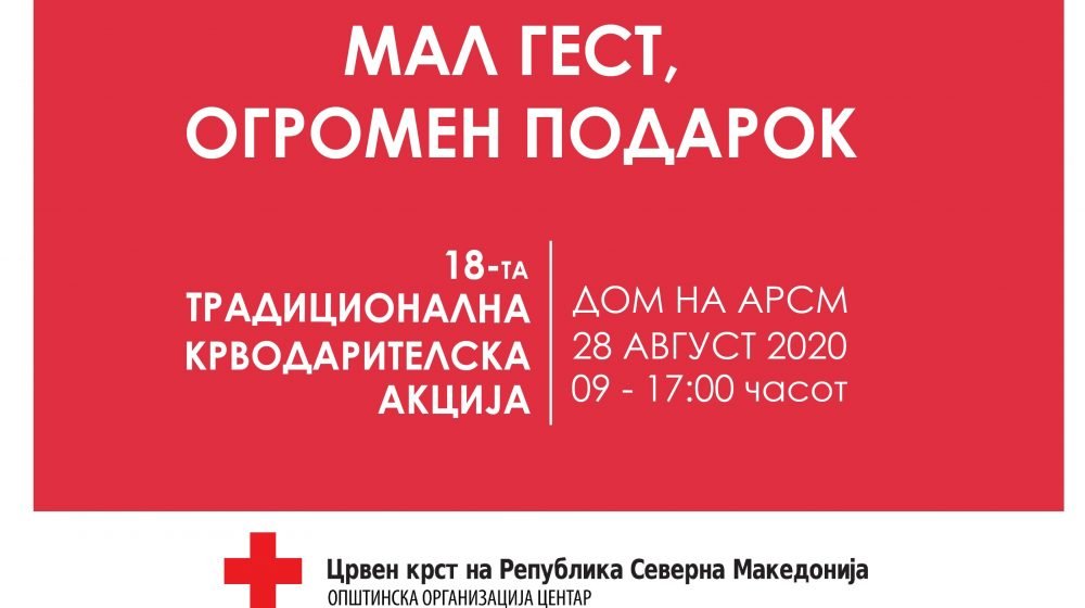Црвен крст на Република Северна Македонија – Општинска организација Центар, во соработка со Институтот за трансфузиона медицина, Ве поканува на XVIII-та по ред традиционална крводарителската акција по повод празникот “Голема Богородица” под мотото: