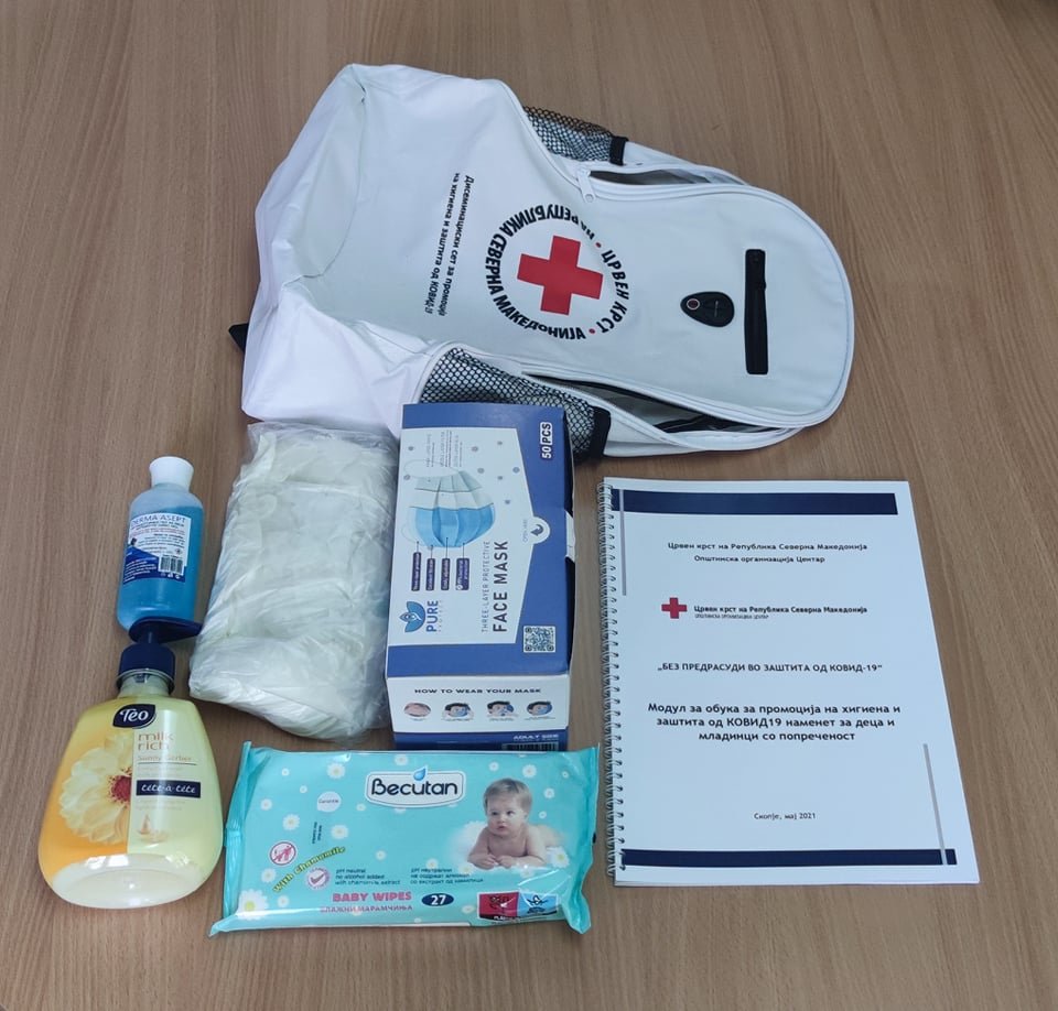 Исто така, сите едукатори добија ранчиња со хигиенски сет, како и Модул за обука за промоција на хигиена и заштита од КОВИД-19, на кој автори се Александар Стојаноски – Меѓународен тренер за промоција на хигиена во случај на катастрофи и кризни ситуации и Марија Узуновска – Дефектолог.