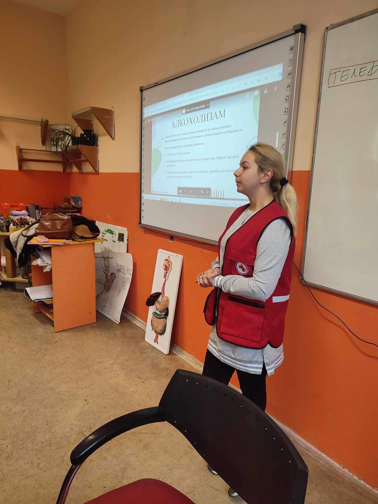 По повод одбележување на месец за борба против болести на зависност, врсничките едукатори од Клубот на млади на Црвен крст на Република Северна Македонија – Општинска организација Центар на ден 17.10.2023, ги пренесоа своите знаења на тема „Првенција од болести на зависност“ на учениците од седмо одделение од ООУ „Димитар Миладинов“. Беа реализирани 3 едукации за 61 ученици, од кои 32 машки и 29 женски ученици, за време на кои се дискутираше на темите зависност од цигари, алкохол и дрога. Особено внимание се посвети на начините на превенција и ефектите кои зависностите ги имаат врз човековото здравје.