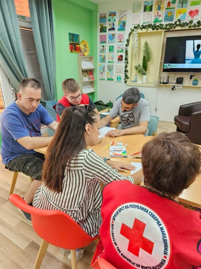 Волонтерите на Црвен крст – Општинска организација Центар на 11.09.2025 одржаа ликовна работилница во Центарот за лица со попреченост над 18 години „Пролет“.