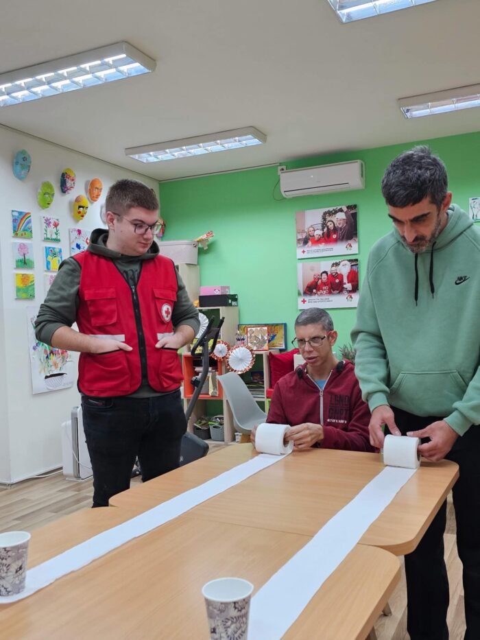 Волонтерите од Црвен крст Центар заедно со корисниците уживаа во забавни натпревари, видео игри и активности кои поттикнуваат тимски дух, концентрација и соработка.