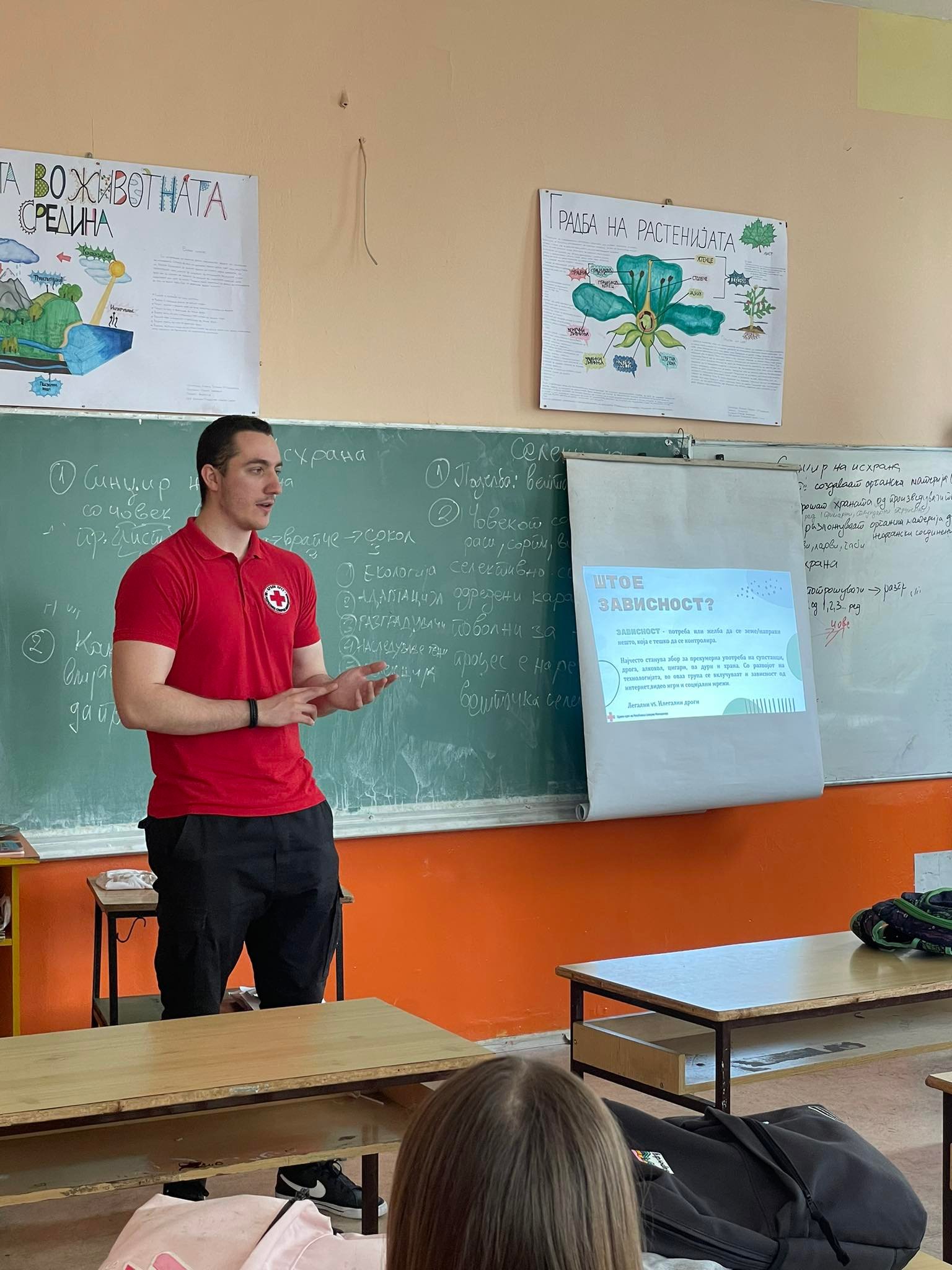По повод World No-tobacco Day – Светскиот ден на борба против пушење, врсничките едукатори од Клубот на млади на Црвен крст на Република Северна Македонија – Општинска организација Центар, на 31.05.2023 година ги пренесоа своите знаења на учениците од седмо одделение од ООУ „Димитар Миладинов“ на тема „Првенција од болести на зависност“. Беа реализирани 4 едукации за 85 ученици за време на кои се опфатија темите зависност од цигари, алкохол и дрога, нивно препознавање и превенција. Се стави акцент на начините на превенција и ефектите кои зависностите ги имаат врз човековото физичко и ментално здравје.