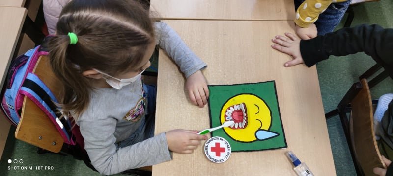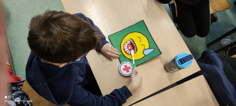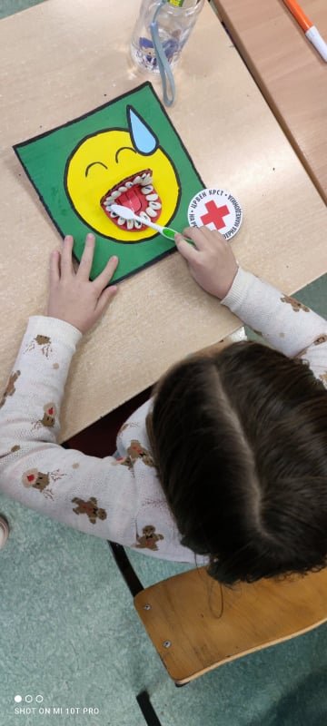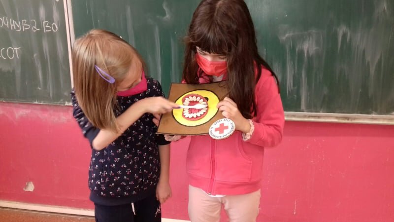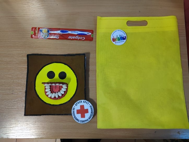 Волонтерката Анастасија Србиновска Божинова подготви интересни и едукативни изработки во вид на емоџи човечиња со заби, со цел учениците правилно да научат како се мијат забите. Сетовите кои ги добија учениците беа составени од едно емоџи човече и четка за заби. Освен што оваа активност е од едукативен карактер, исто така беше и забавна за дечињата кои навистина уживаа додека ги совладуваа вештините за правилно четкање на забите.