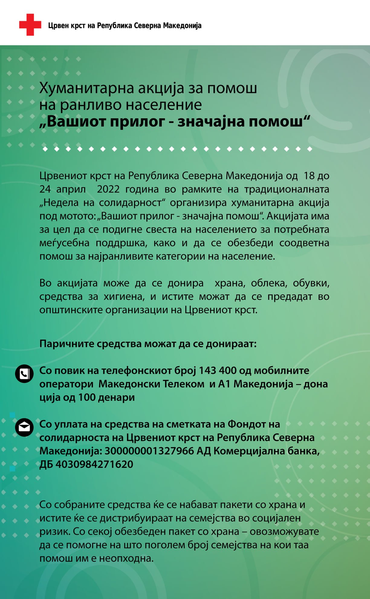 Одбележување на Неделата на солидарност под мотото „Вашиот прилог – значајна помош“