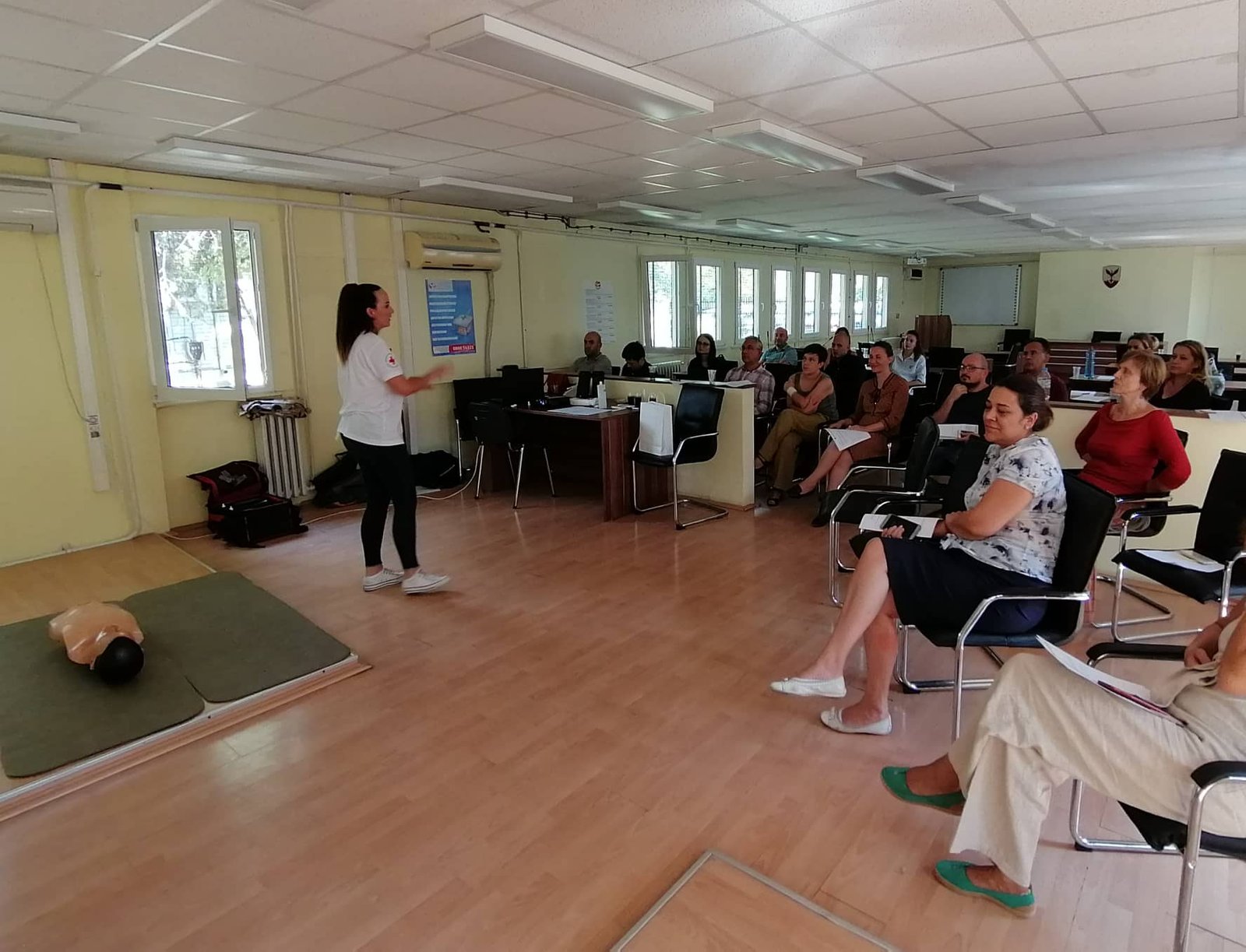 Општинската Организација Центар во склоп на кампањата за прва помош на Црвен крст на Република Северна Македонија под мотото: “Твоето незнаење чини живот”, на 11.09.2019 во просториите на Општина Центар одржа уште една освежителна обука за прва помош за возачи. Вработените во Општина Центар имаа можност да ги освежат своите познавања од областа на првата помош и да се обидат практично да го применат своето знаење. Во текот на обуката слушателите покажаа огромен интерес, неколкумина од нив се обидоа и сами да го направат она што претходно беше демонстрирано. Се дискутираше за мислења и искуства поврзани со темата.