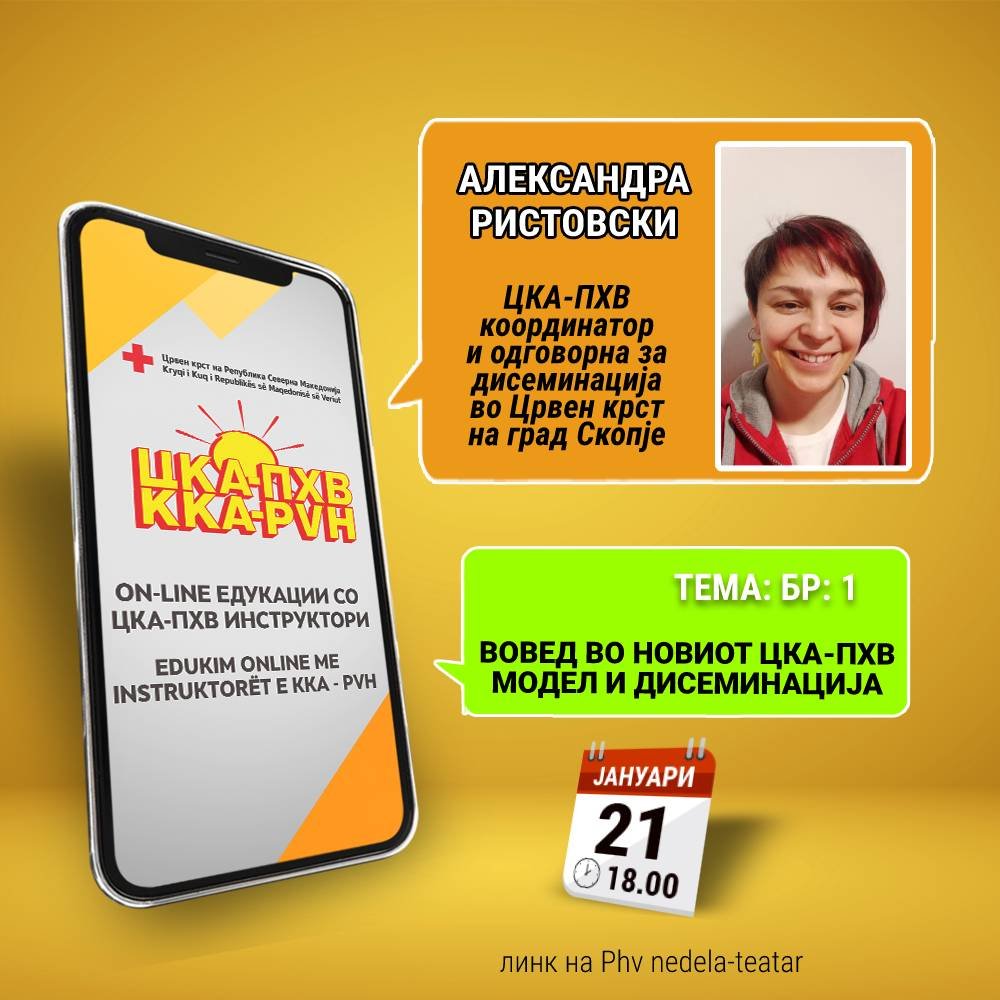 Почнувајќи од утре, 21 јануари 2021 година, еднаш неделно ќе се реализираат обуки за млади од сите ООЦК. И така, секој четврток со почеток во 18.00 часот, во времетраење од 70 минути ќе се реализираат работилниците од страна на искусните ЦКА-ПХВ инструктори.