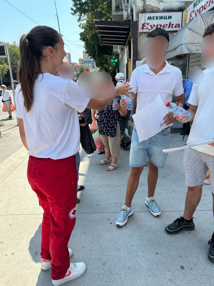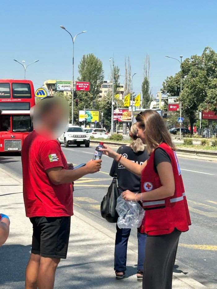 Волонтерите од Клубот на млади при Црвен крст на Република Северна Македонија – Општинска организација Центар на 11, 12 и 13 август 2025 година,спроведоа активност за превенција и намалување на ризикот од топлотна исцрпеност кај населението.
