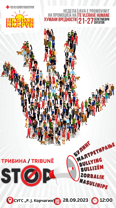 Црвен крст на Република Северна Македонија – Општинска организација Центар спроведе трибина на тема „Булинг во училиштата“ по повод одбележување на Неделата на промоција на хумани вредности 2023.