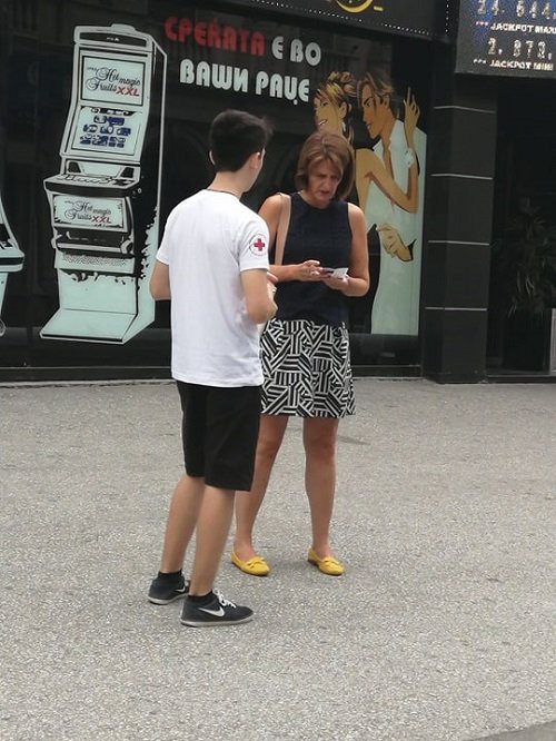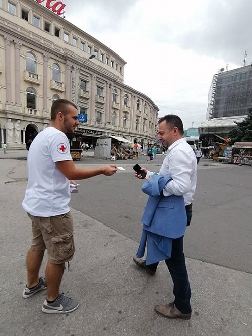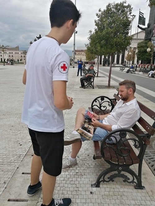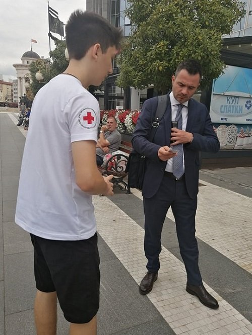 Волонтери од Општинската организација Центар, на ден 15.08.2019 во склоп на кампањата за прва помош со мото: “Твоето незнаење чини живот“, спроведена од Црвен крст на Република Северна Македонија, излегоа на плоштадот Македонија да поделат промотивен материјал за освежителните обуки за возачи.