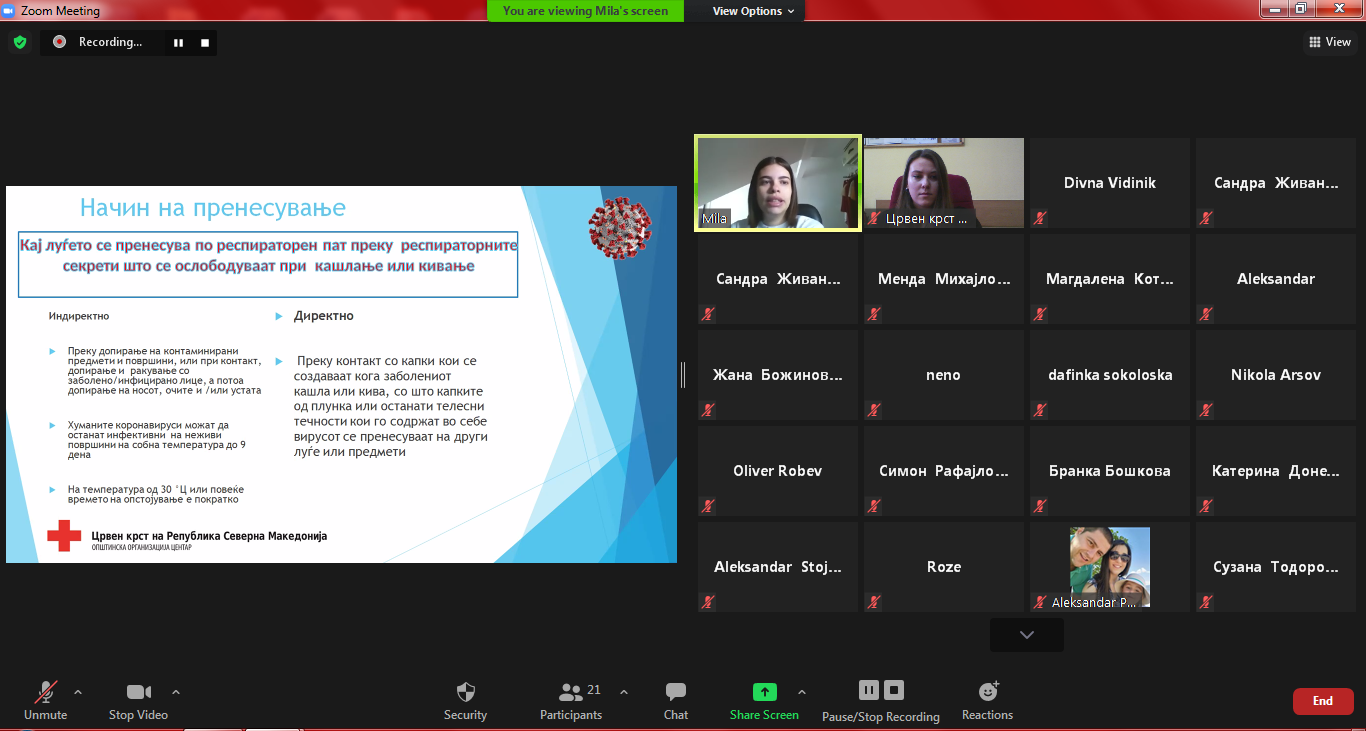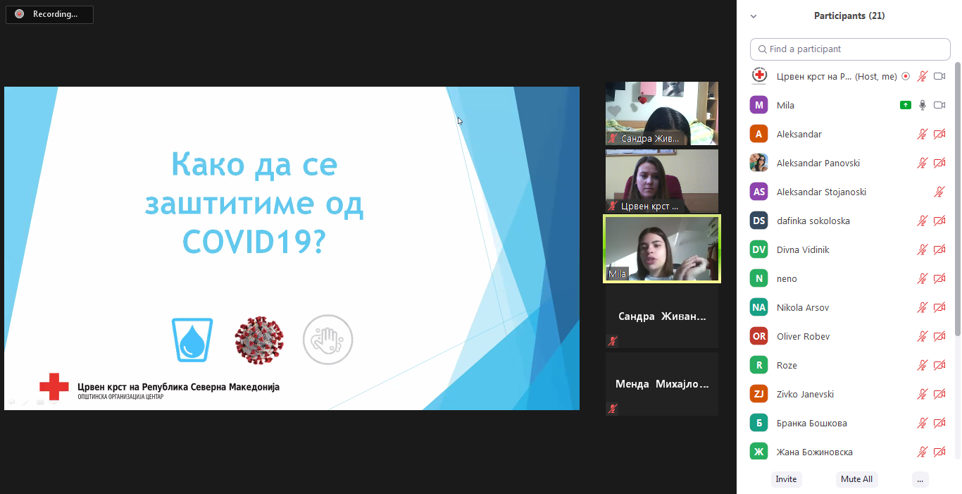Црвен крст на Република Северна Македонија – Општинска организација Центар, на ден 10.06.2021 во периодот од 9 до 10 часот, реализираше едукација за наставнички, технички и стручен кадар од ДСУ за рехабилитација и образование „Св. Наум Охридски“, во рамки на проектот „Без предрасуди во заштита од Ковид-19“.
