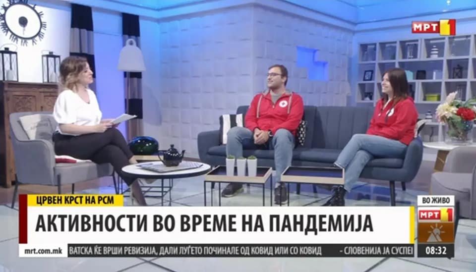 По повод Недела на Млади на Црвен крст на Република Северна Македонија, која се одбележува од 1ви до 7ми октомври, Димитар Тануровски и Мила Трајчева, волонтери во Клубот на млади при Општинска организација Центар, гостуваа во утринската емисија на Македонската Радио Телевизија. Тие ги промовираа активностите на Клубот на млади, начинот на кој ќе се одбележи Неделата на Млади, проектите “Зошто сум во болница” и “Без предрасуди во заштита од Ковид-19” и активностите на мобилните тимови.