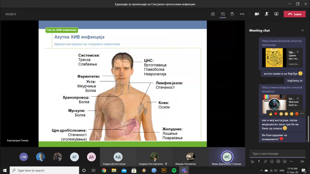 По тој повод, врсничките едукатори од Црвен крст на РСМ – Општинска организација Центар на ден 11.12.2020 реализираа онлајн едукација во ООУ “Димитар Миладинов“ преку платформата Microsoft Teams. Учениците од 8мо одделение се запознаа начините на превенција, кои се знаци и симптоми на вирусот, какви видови инфекции постојат, на каков начин се пренесува, како се дијагностицира и како се третира. Едукацијата поттикна интеракција кај учениците кои покажаа огромен интерес за темата. Вкупно беа опфатени 71 ученик од 3 паралелки. Едукацијата помина во одличен ред. Продолжуваме со онлајн едукации и во иднина.
