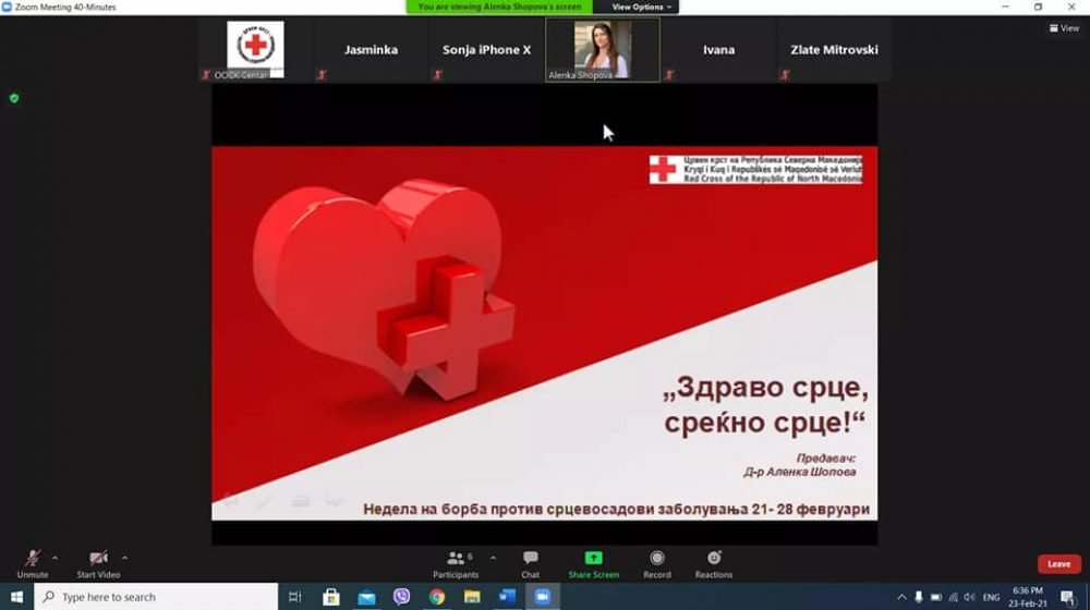 Црвен крст на Република Северна Македонија – Општинска организација Центар на ден 23.02.2021 година ја одбележа Неделата на борба против срцево-садови заболувања преку едукација на оваа тема. Советот на родители од ООУ “Димитар Миладинов“, во 18.30 часот се вклучи во активноста за подигање на свеста за заштита и превенција од срцево-садови заболувања. Учесниците имаа прилика да се информираат за тоа што претставуваат заболувањата на срцето, кои може да бидат причините и начините за превенција, кои се можните ризик фактори, кои се најчестите заболувања и слично. Тие покажаа голем интерес на темата, развија дискусија преку различни лични и туѓи искуства и го искажаа своето задоволство од едукацијата и од предавачот д-р Аленка Шопова.