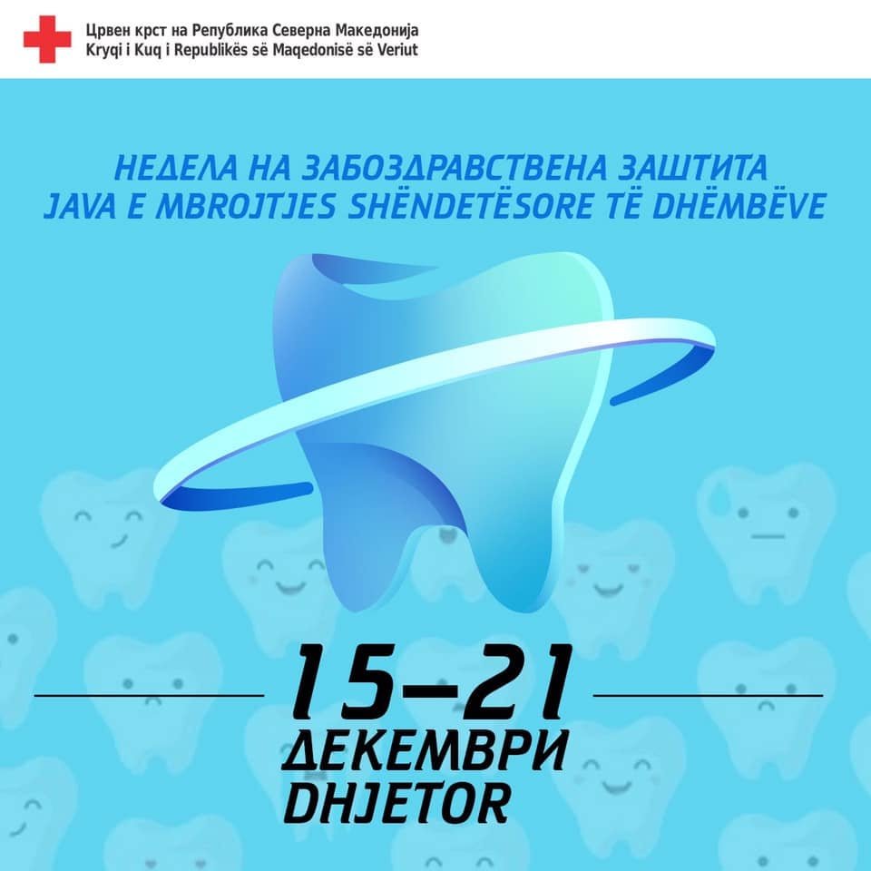 Црвениот крст на Република Северна Македонија во периодот од 15-21 декември 2020 год. ќе ја одбележи Неделата на забозадравствена заштита со мотото: Здрави животни навики за здрави насмевки. На овој начин сакаме да ја подигнеме јавната свест за важноста на оралното здравје, кое е клучен показател за целокупното здравје, благосостојба и квалитетот на животот. Повеќето орални заболувања и состојби имаат заеднички модифицирани фактори на ризик со водечките незаразни хронични болести (кардиоваскуларни заболувања, карцином, хронични респираторни заболувања и дијабетес). Овие фактори на ризик вклучуваат и употреба на тутун, консумација на алкохол и нездрава исхрана богата со рафинирани шеќери. Постои докажана врска помеѓу оралното здравје и општата здравствена состојба. Докажано е дека дијабетес мелитус е поврзан со развој и прогресија на периодонтитисот.