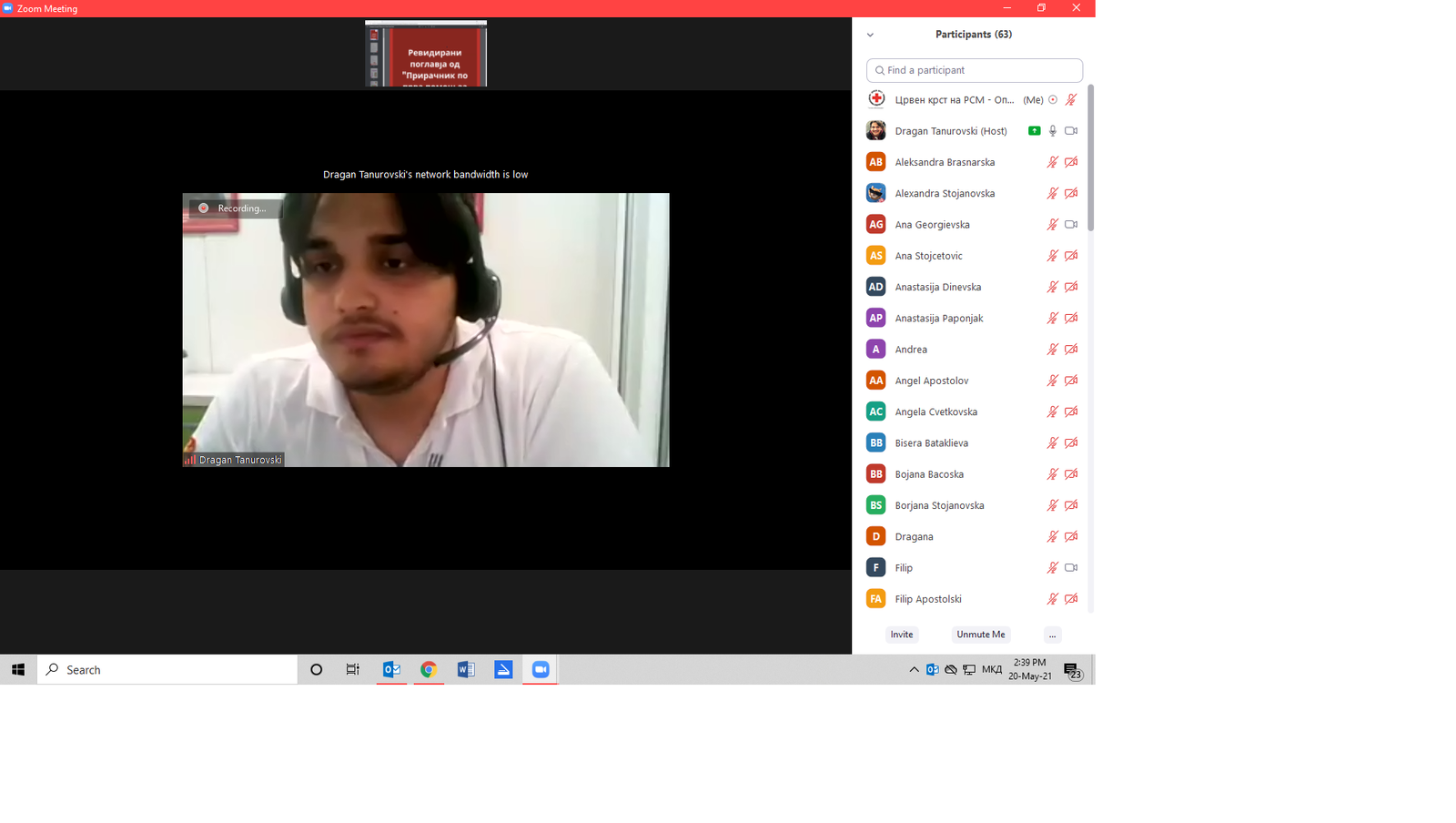 За реализација на оваа активност, успешно беа спроведени 2 предавања по Прва помош на 20-ти и 21-ви мај 2021 година во периодот од 14.30 до 16.30 часот. Предавањата беа реализирани преку платформата ZOOM од страна на сертифициран демонстратор по прва помош – Драган Тануровски. На предавањата учествуваа 66 учесници, односно 11 екипи. Учесниците имаа можност да се запознаат со основите на првата помош, преку употреба на селектирани поглавја од Прирачникот по прва помош за возачи. Освен теоретски осврт, тие имаа можност да погледнат видеа во кои практично се прикажува санирање на повредите кои ги изучуваат.
