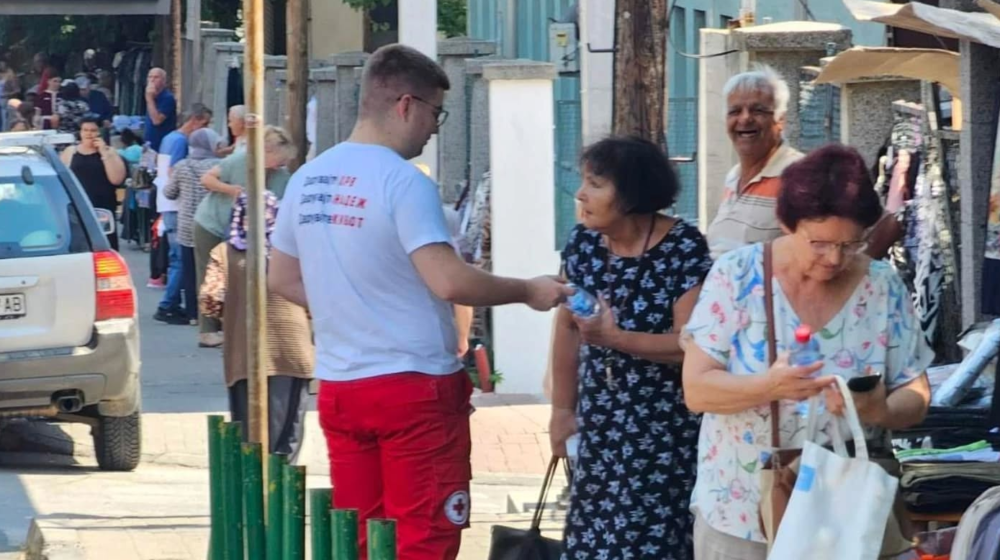 Волонтери од Клубот на млади на Црвен крст на Република Северна Македонија Општинска организација Центар на 07.07.2025 (Понеделник) и 08.07.2025 (Вторник) во периодот на највисокото искачување на топлинскиот бран од 11ч до 14ч поделија флаширана вода како превенција и намалување на можностите да настане топлотна исцрпеност кај населението на територија на Општина Центар.