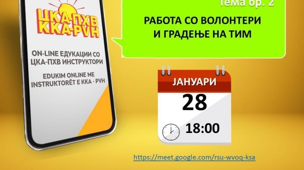 Заради пандемијата со Ковид-19, програмата Црвен крст во акција-Промоција на хумани вредности (ЦКА-ПХВ) се реорганизираше и оваа година ќе бидат организирани 40 едукативни онлајн работилници од страна на 24 искусни ЦКА-ПХВ инструктори-волонтери. Работилниците се наменети за млади до 20 години!